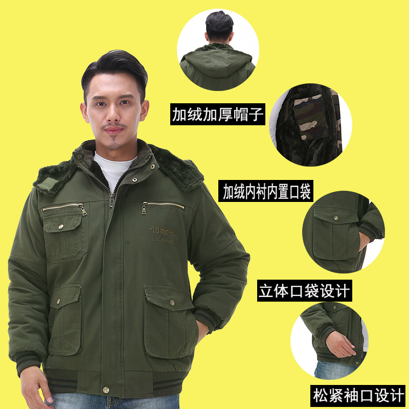 Labor Insurance Small Cotton Padded Jacket Winter Men's Glint Thickened Pure Cotton Flower Color Welt Shorts Cotton Clothes Army Green Anti-Chill Working Cotton Clothing