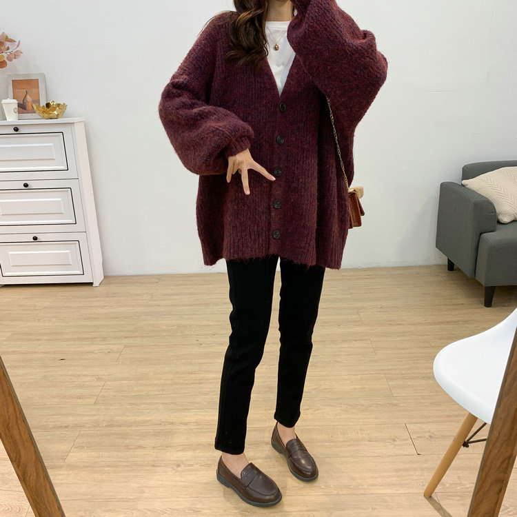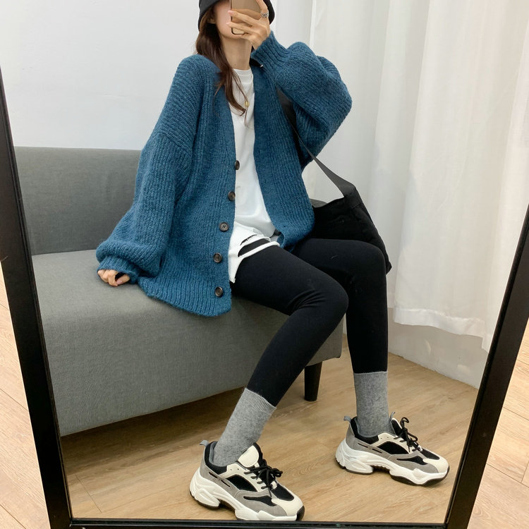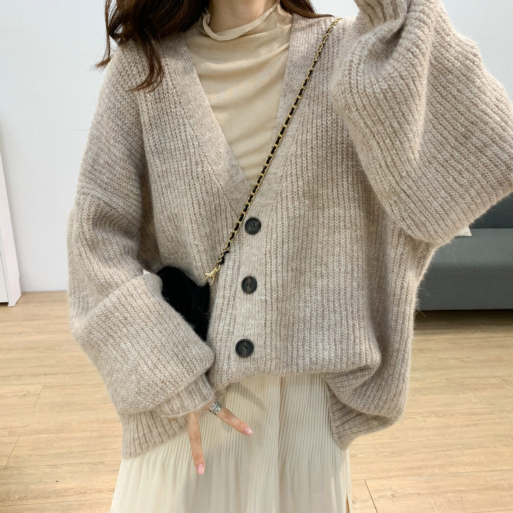 Lazy Pit Bar Cardiovert Sweater Woman 2022 Chunqiu New Korean version loose with slim large V neck sweater jacket