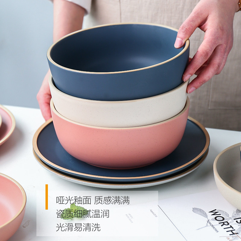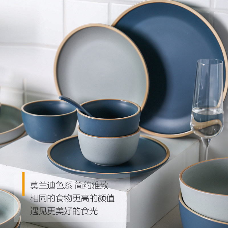 Kawashima Uk Morandi Pure Color Nordic cutlery Dish Suit Creative Day Style Brief Bowls and chopsticks Bowl Trays Household Composition