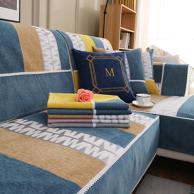 Sofa cushion four seasons universal Nordic simple high-grade chenille non-slip fabric cushion all-inclusive sofa cover cloth cover