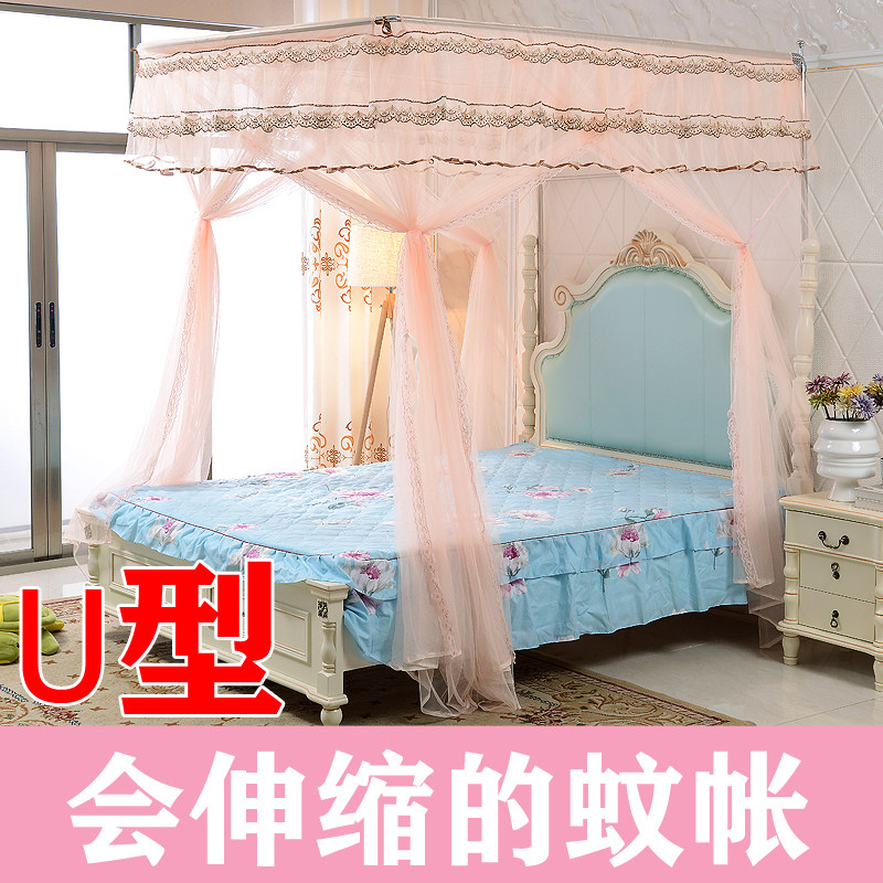 U Type Telescopic Mosquito Net Bracket Ground Princess Wind 1 5m Home 1 8m Bed Mosquito Net Encrypted Thickened Tattooed-Taobao