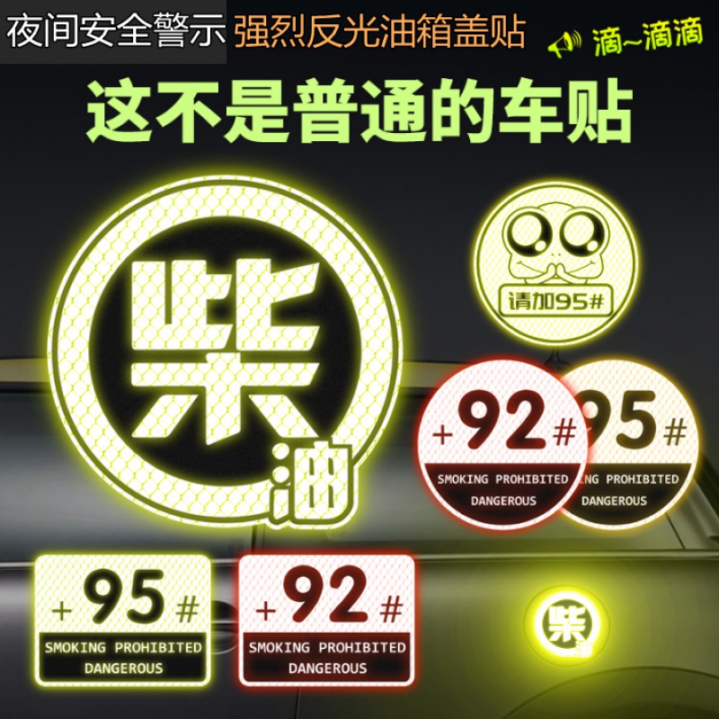 92# 93 No 95 refueling oil type prompt diesel car stickers Car fuel tank cover reflective patch paper personality decorative stickers