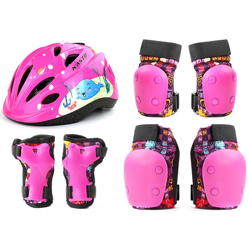 Blue protective gear (six pieces) pink protective gear (six pieces) blue (protective gear helmet "pink (protective gear safety helmet) blue (protective gloves" pink (protective gloves) blue (protective gloves) blue (patron