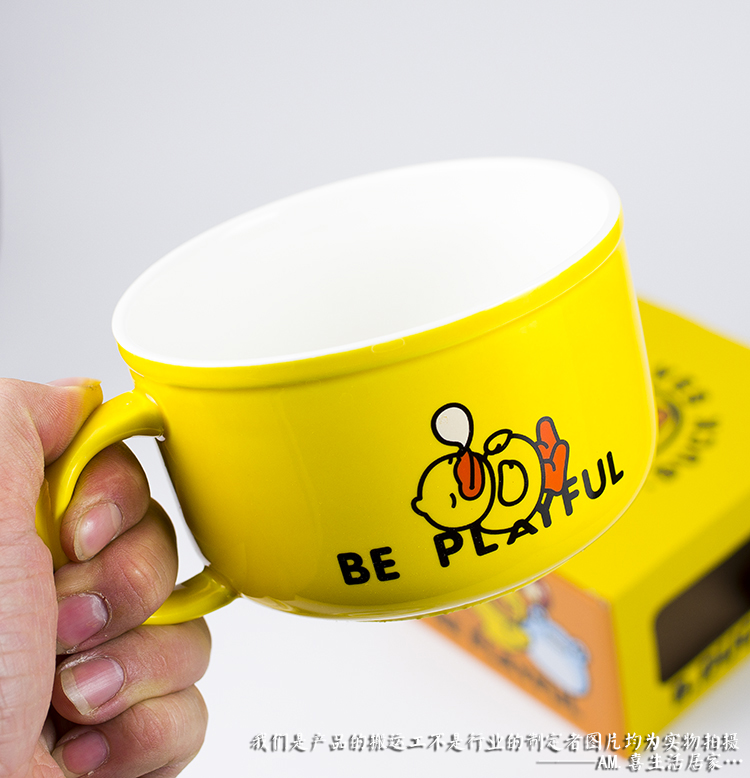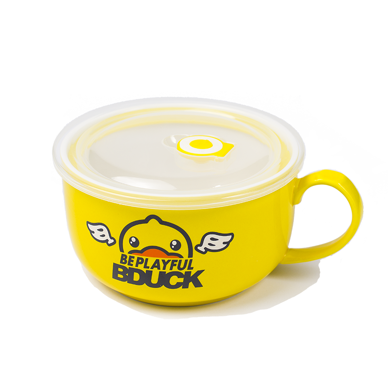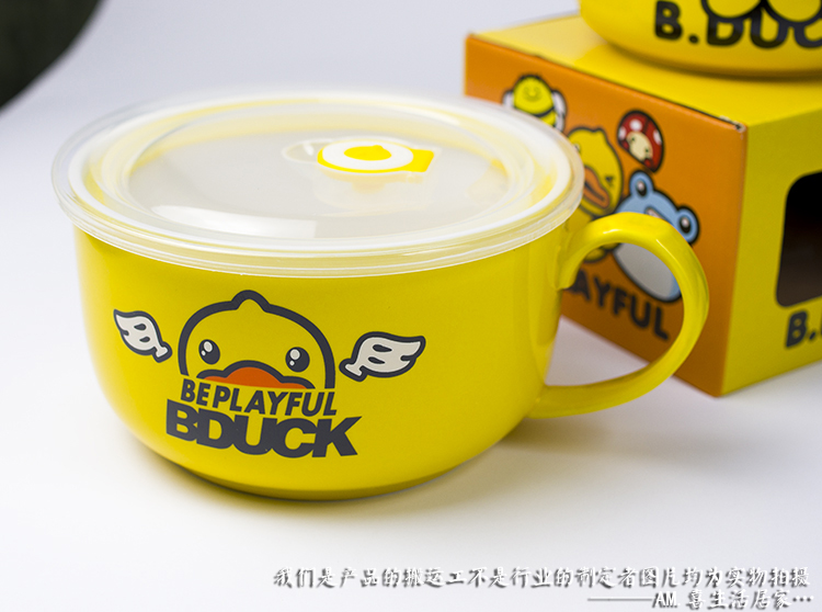 Small Yellow Duck Handle Ceramic Foam Noodles Bowl Salad Bowl Large Number Student Face Cup Refreshing Bowl With Lid Seal Card Love Cartoon-Taobao
