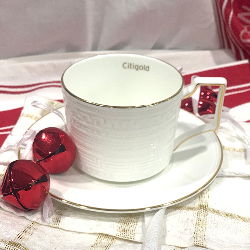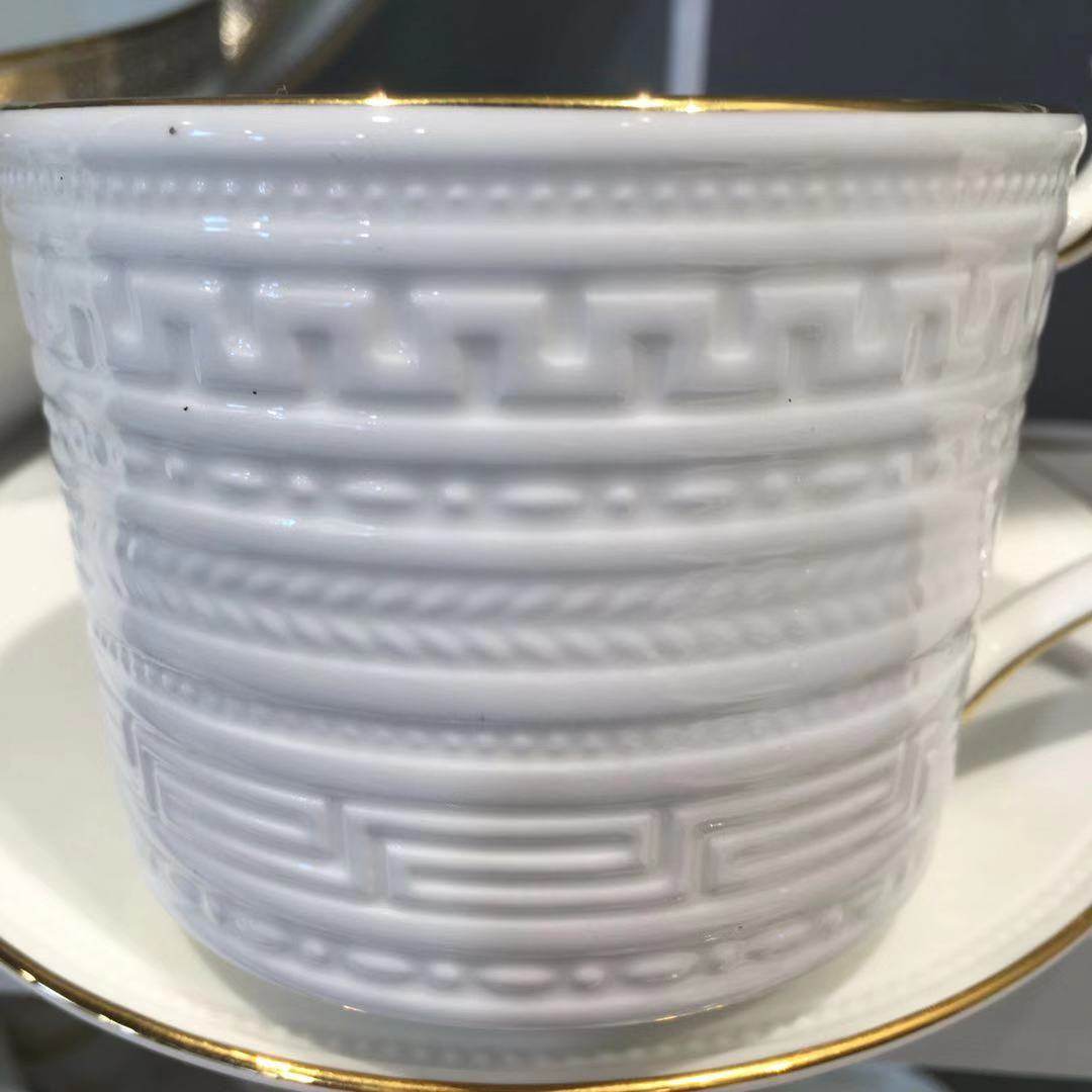 (Special 2) Wedgwood Phnom Penh Embossed Series Coffee Cup Saucer Set 50% Bone Meal + 22K Gold Slip Edge