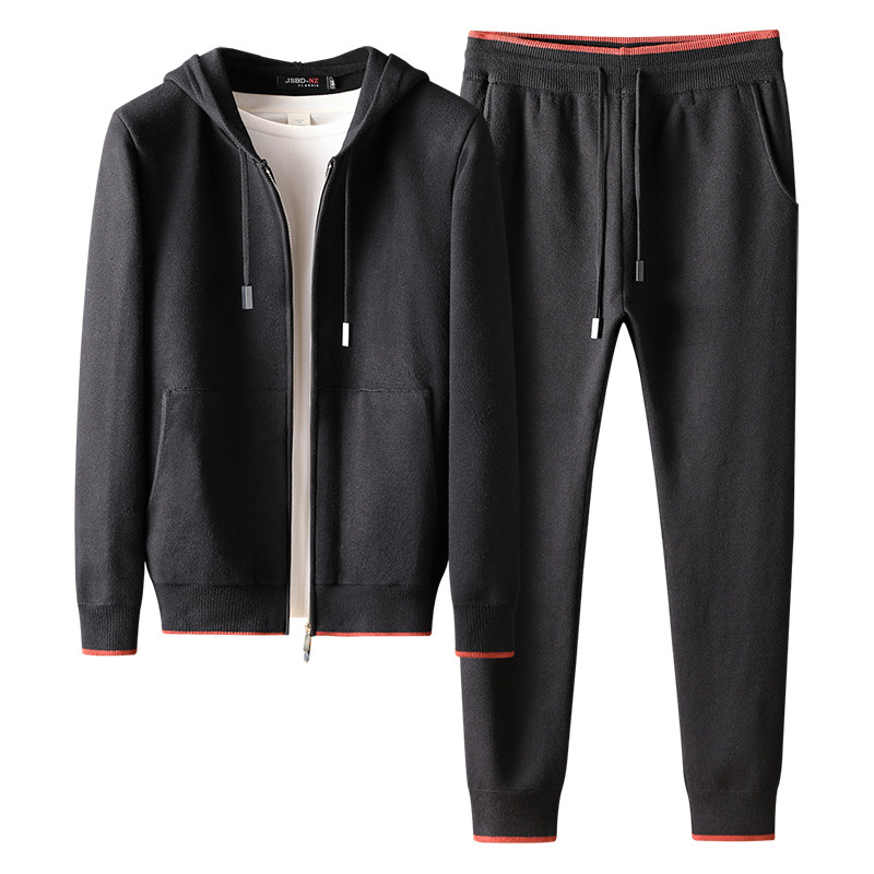 JSBD autumn-winter high-end wool warm thick and solid two sets of comfortable pro-skin men knit casual sports suit-Taobao