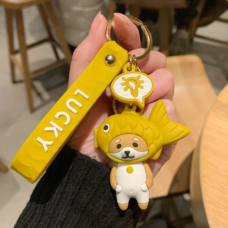 Cute Cartoon Paparazzi Key Button Female Key Necklace Net Red Creative Dinosaur Bag Pendant Key Ring New Year Gift