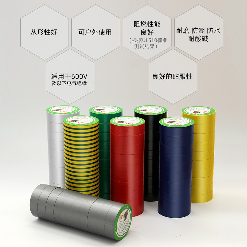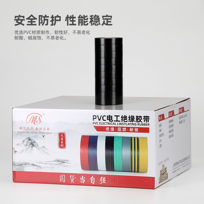 MS fine electrician PVC insulation tape 1 8cm (18mm)wide 9 meters long Yellow green brown silver gray 9 colors wire tape compression 600V