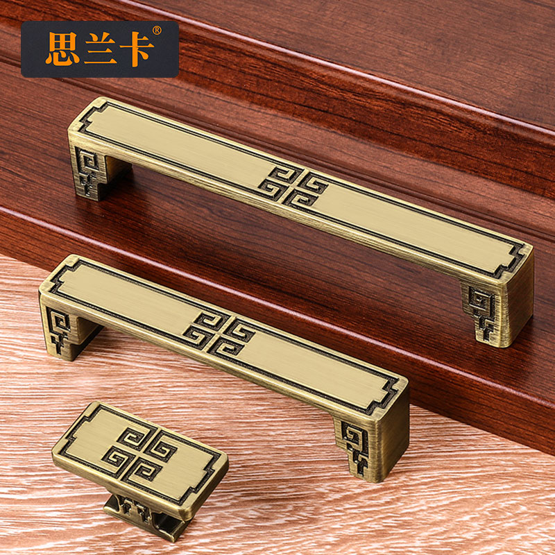New Chinese handle cabinet door Qinggu single-hole imitation ancient bronze drawer European style American small overall cabinet wardrobe Classical handle