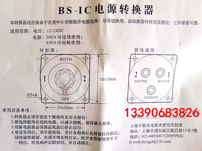 Lifeboat power conversion switch BS-1C type YUQIN small ship power separation switcher 12 24DC