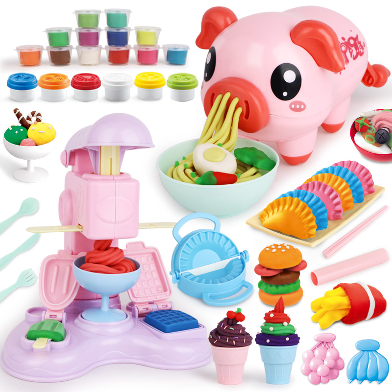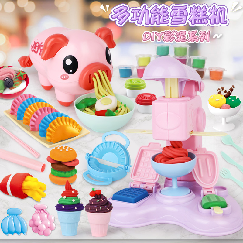 Large size ice cream ice cream ice cream maker 18 cans of colour mud (combined) pink piggy ice cream ice cream ice cream ice cream ice cream maker 30 cans of colour mud burger grill 30 jars of colored clay blue piggy noodles