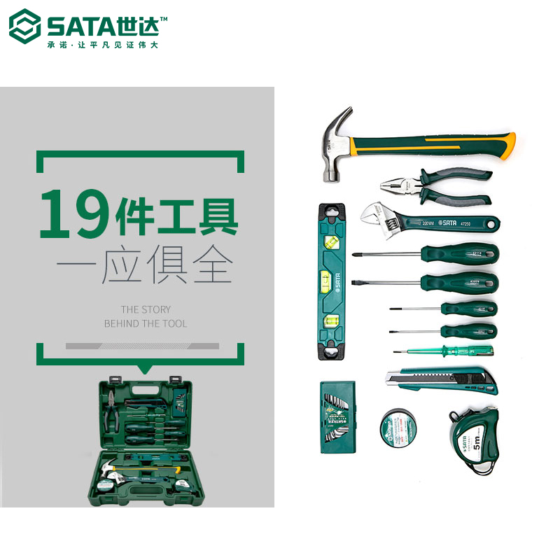 Shida 05163 Hardware Combination Suit Home Toolbox Combo 19 pieces Practical installation Multi-functional maintenance