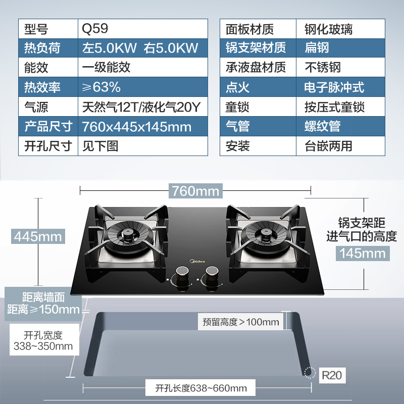 Midea's Q59 gas stove natural gas dual stove home desktop liquefied gas gas cooker table is embedded for dual use