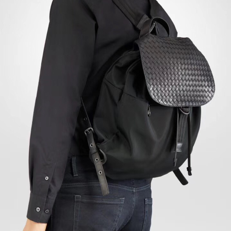 First layer cowhide woven backpack 2022 new European and American fashion atmosphere casual backpack simple travel bag men