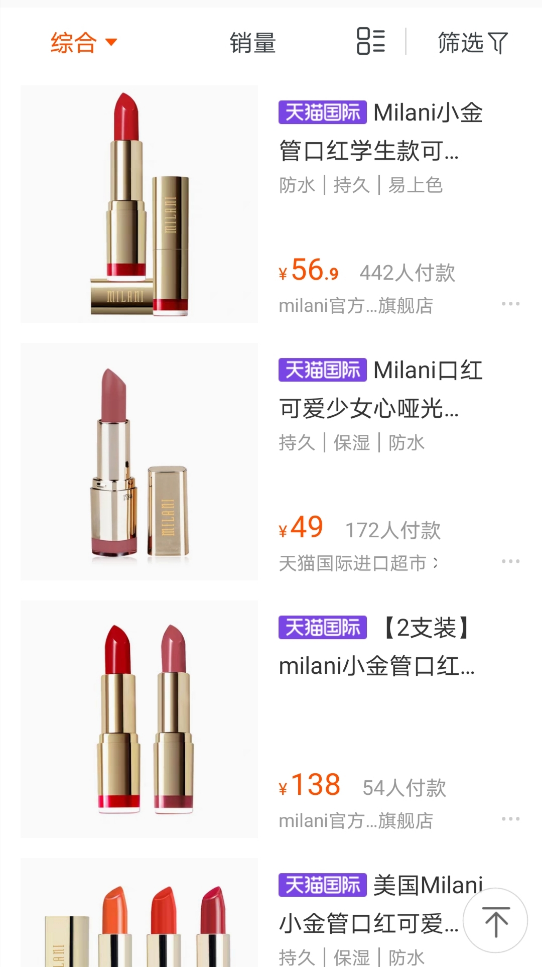 Take 2 minus 5 colors all Milani small gold tube lipstick matte color moisturizing lipstick 79 retro red and white