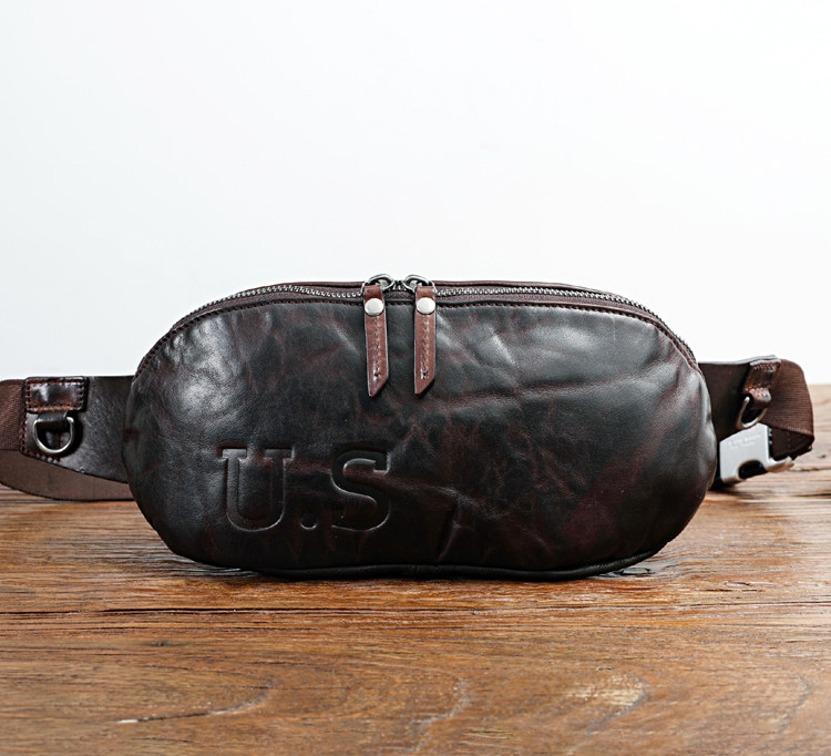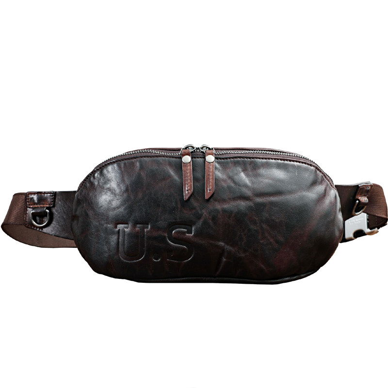 Retro High-end Plant Tanning Head Layer Cow Leather Men's Chest Bag Genuine Leather Washed for old single shoulder bag Men's purse 100 lap 1