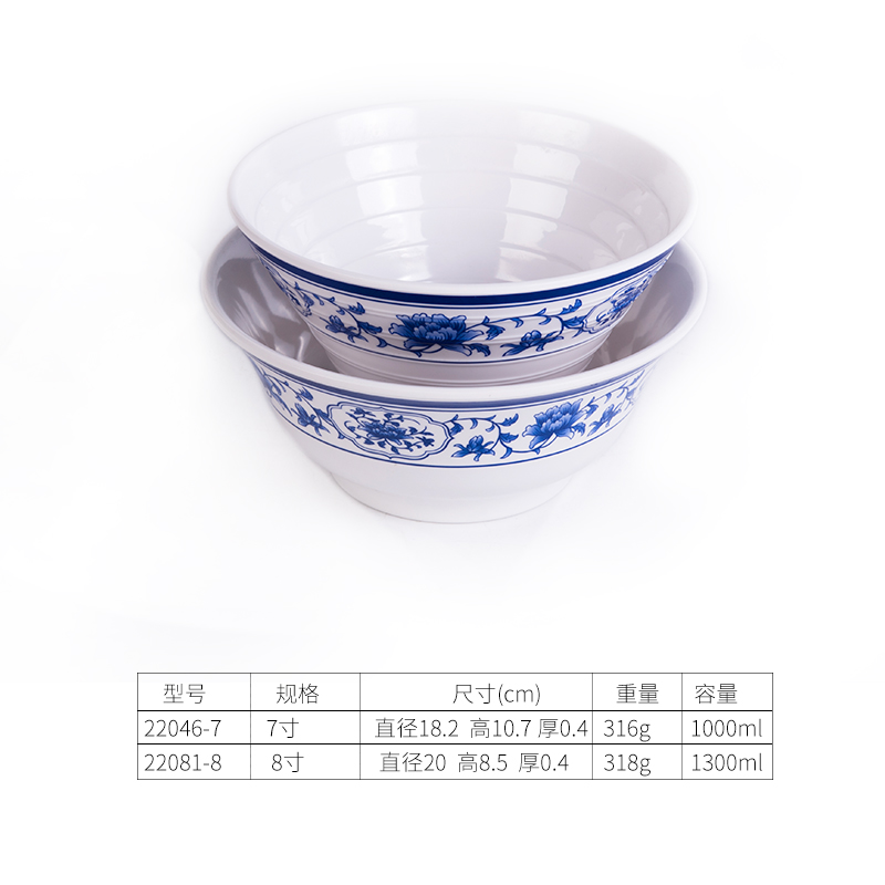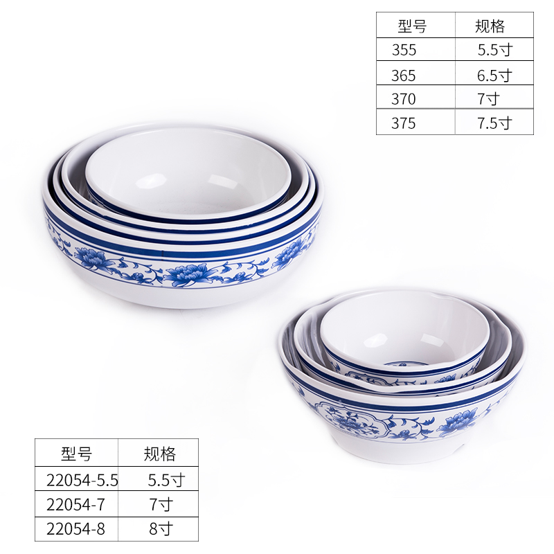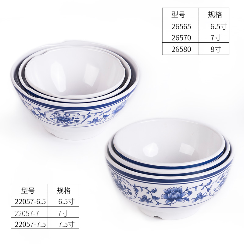 Dense Amines Imitation Porcelain Qinghua Porcelain Rice Bowls Small Bowl Case Soup Bowl Hotel Dining Room Hotel Commercial Creative Fire Pot Shop A5 Cutlery