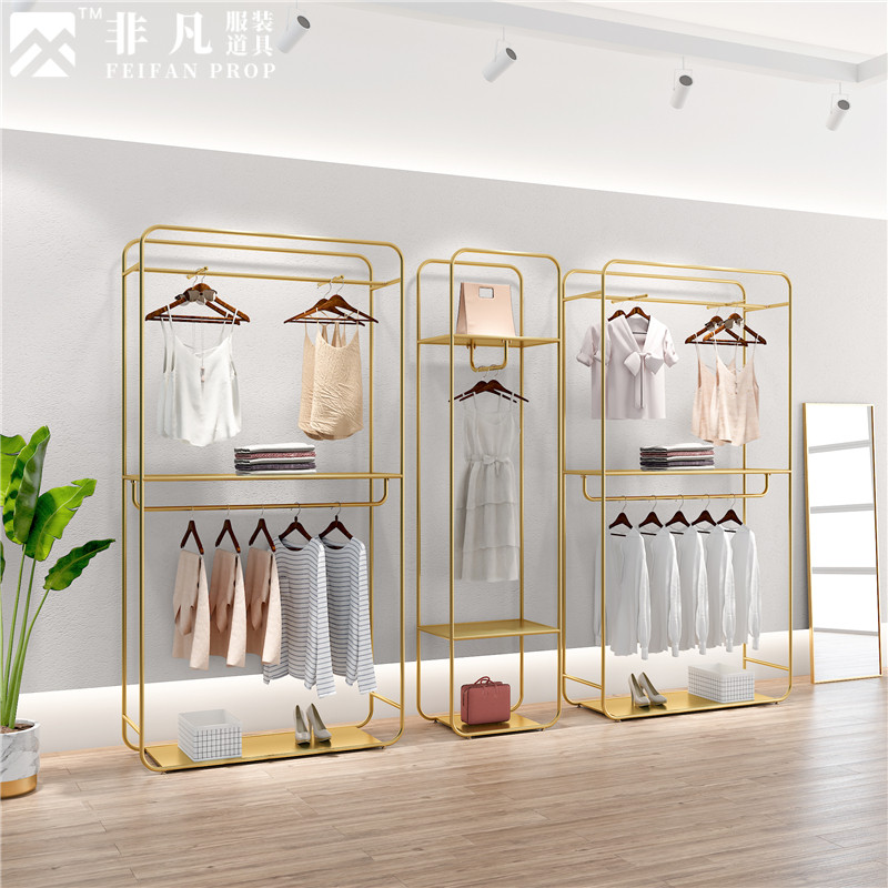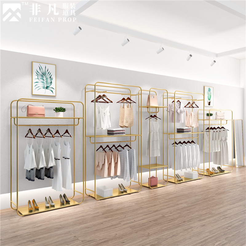 Clothing Store Shelves Women's Clothing Store Shelves Iron Art Minima Middle Island Display Rack Gold Double Floor Landing Hanger