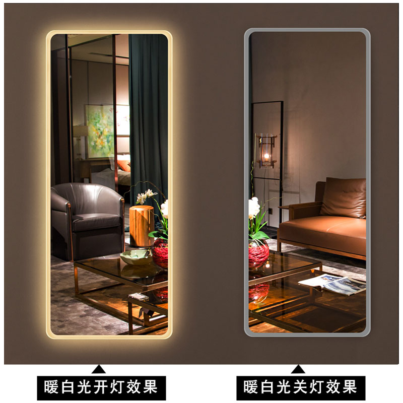 No frame-wearing mirror led lamp mirror wall-mounted full-body mirror rounded corner home audition mirror No bronze mirror with lamp decoration mirror-Taobao