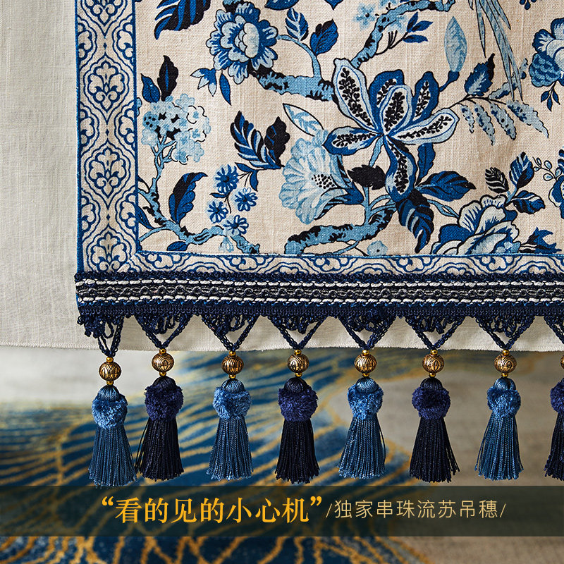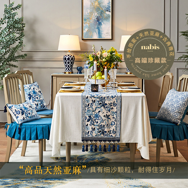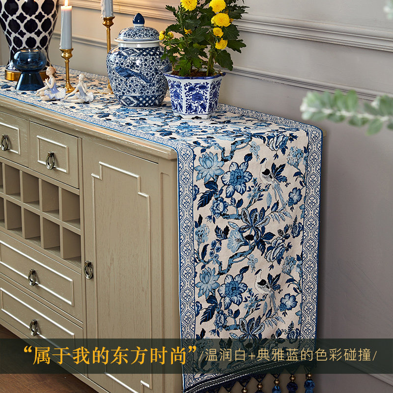 Plant love box blue and white porcelain table flag tea table fabric cotton linen new Chinese tea table heat insulation TV cabinet cover cloth customization