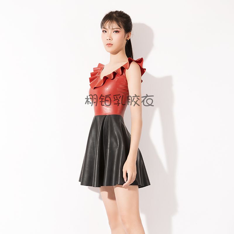 Dress Ladies Latex Sexy Bodysuit Pleated Dress Nightclub Short Skirt Natural Latex Customization