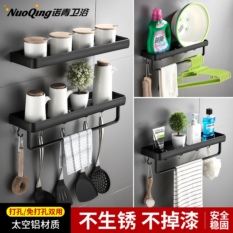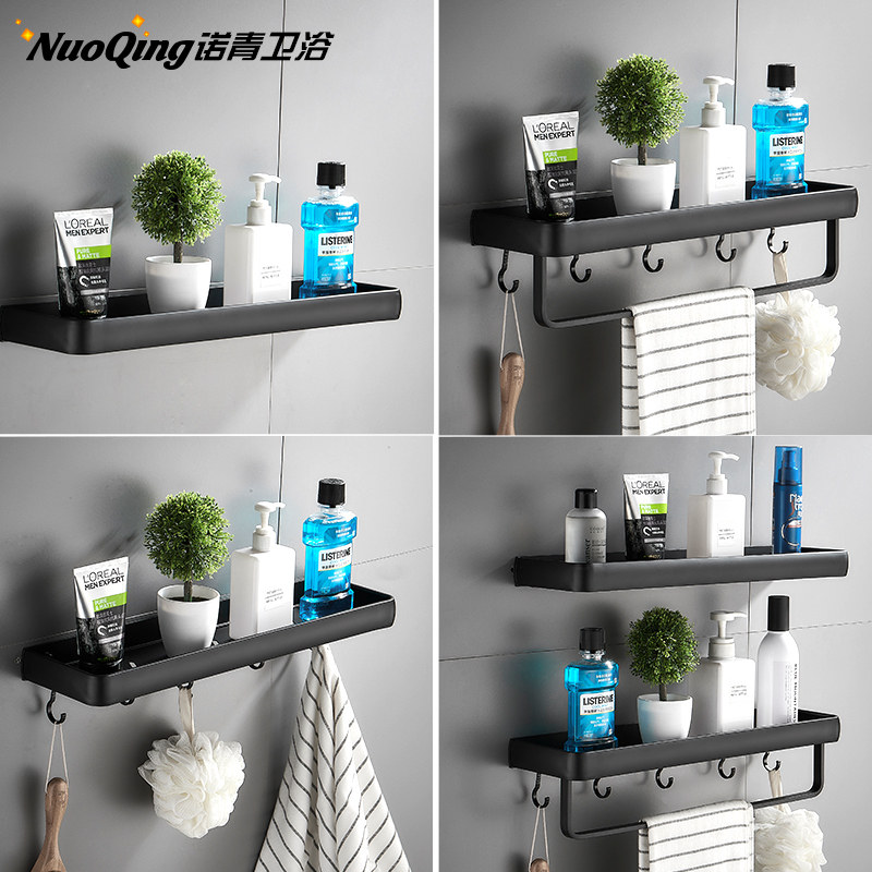 Perforated dressing room Bathroom Shelf Wall-mounted Black Bathroom Toilet Wash Terrace Towel Containing Wall
