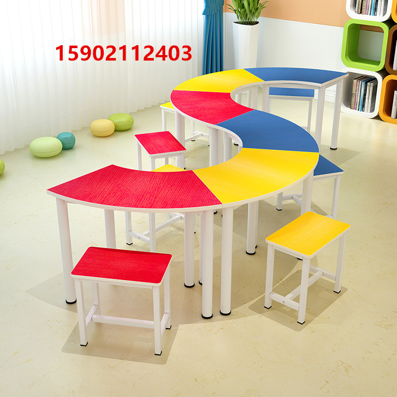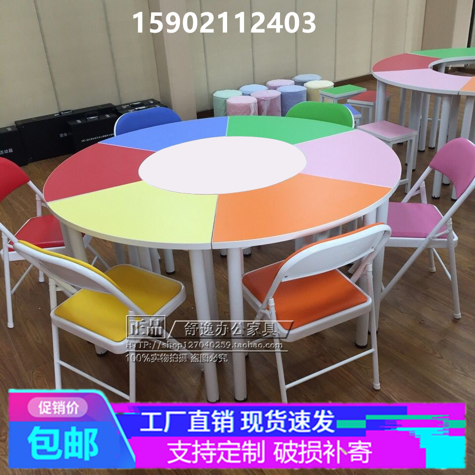 Round group activity table and chair reading room color combination psychological counseling table and chair classroom splicing desk chair