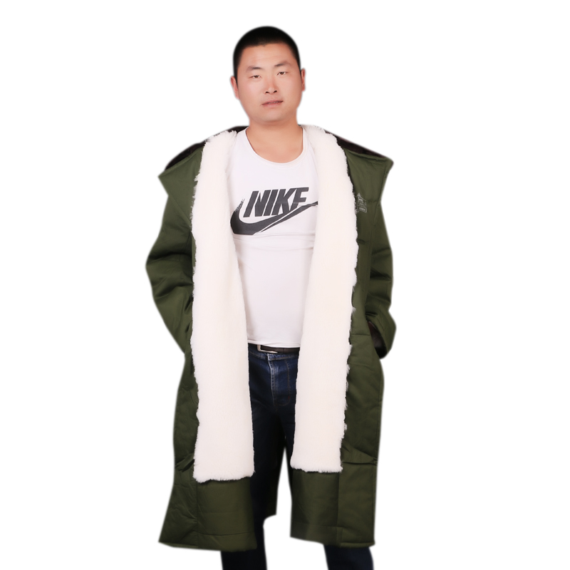 Sheep Leather Army Cotton Coat Men's Leather Wool Integrated Winter Long Version of Anti-cold Northeast old-style Raubao thickened warm cotton coat