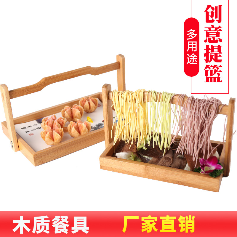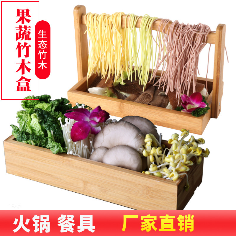 Net Red Fire Pan Shop Roast Fruit And Vegetable Fungus beef Pieces Separation Nine Palace Lattice Bamboo-wood Box Tie basket Specialty Parquet Cutlery