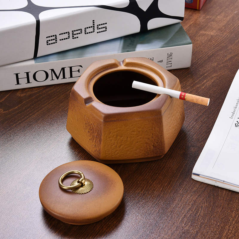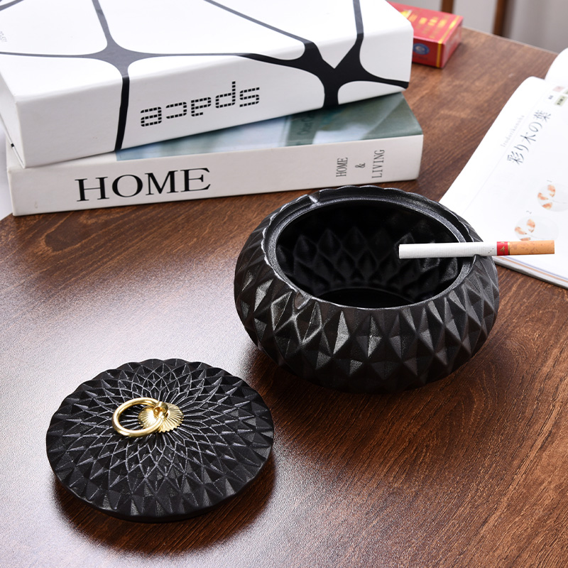 Day Style Coarse Pottery handmade Ashtray Large size with lid Anti-grey Home Black Towers Vat Home Decoration Office Pendulum