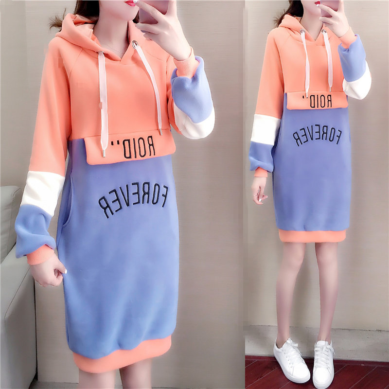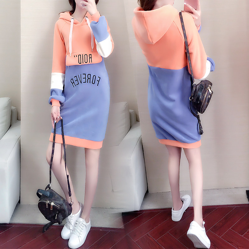 The dress is thickened and the female Han edition of the hat dress 2023 new tide of long - sized autumn and winter dress