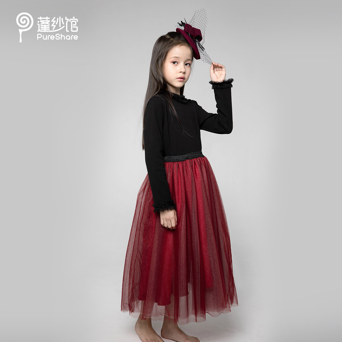 Pureshare Peng yarn museum Children's sweater Girls base sweater pullover Winter dress Western style baby yarn yarn collar