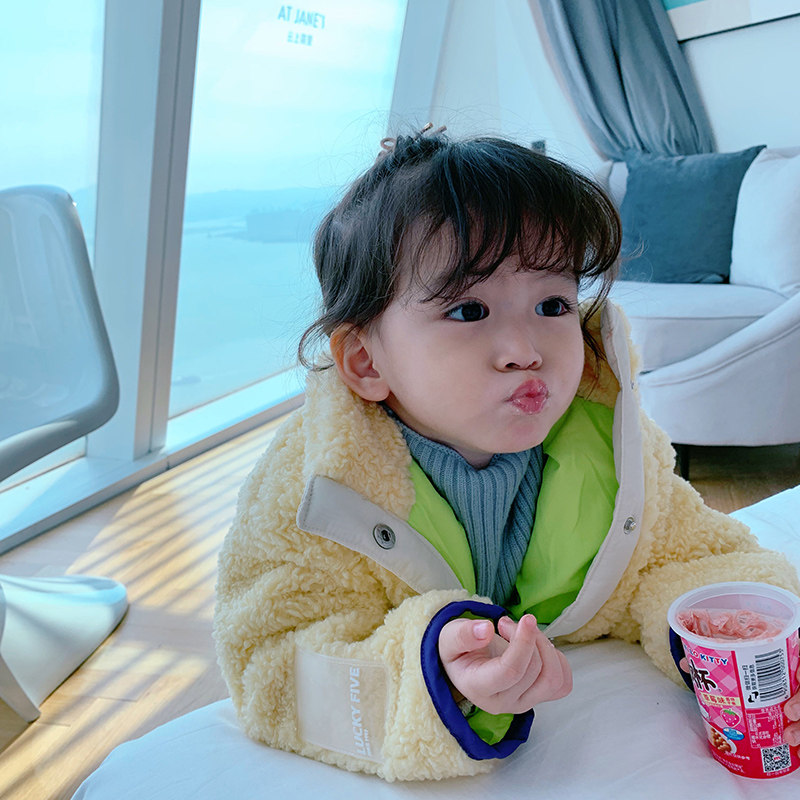 Hong Kong girls coat baby gas winter clothing children plus cool collar sweater parent child Z