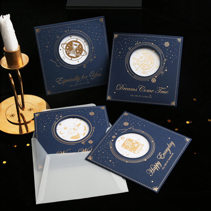 Beixiang Starry Sky Hollow Greeting Card Set Sulfuric Acid Paper Envelope Sticker Wandering Planet ins Thanksgiving Business Bronzing