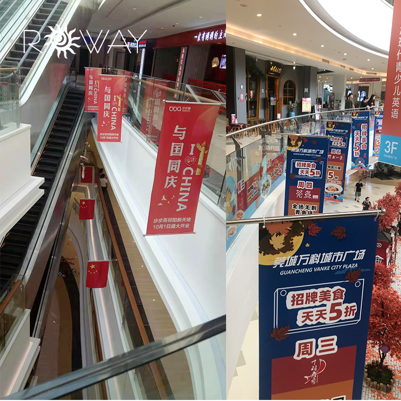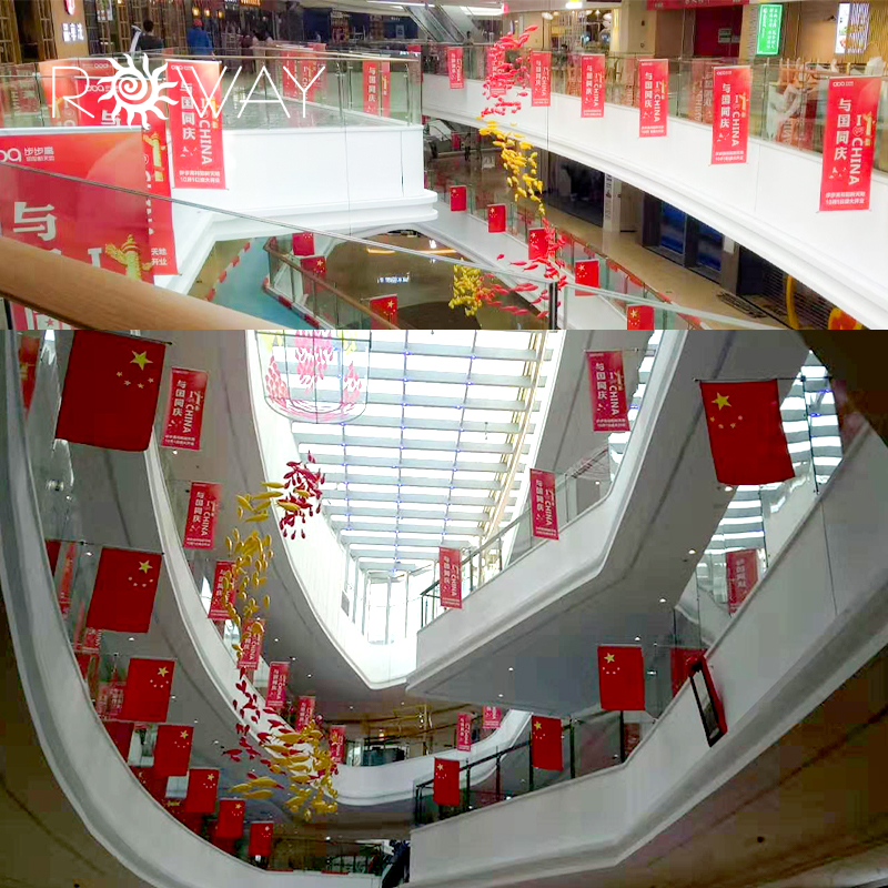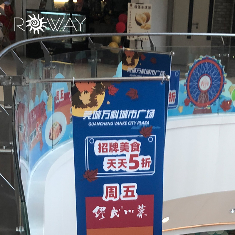 Shopping mall glass side flagShopping mall atrium flagpole store guardrail flagpole aluminum alloy custom card glass seam flagpole