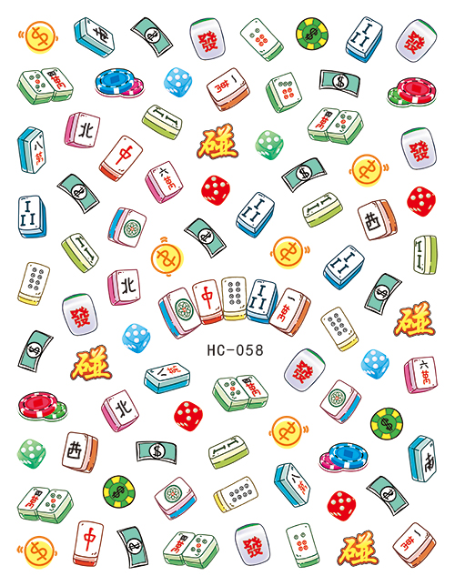 Creative Mahjong Nail Stickers Japanese 3D Net Red Zhongfa Fortune Stickers New Year Nail Stickers Thin Back Adhesive Jewelry Stickers