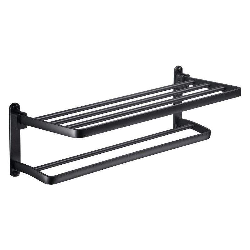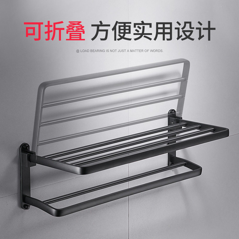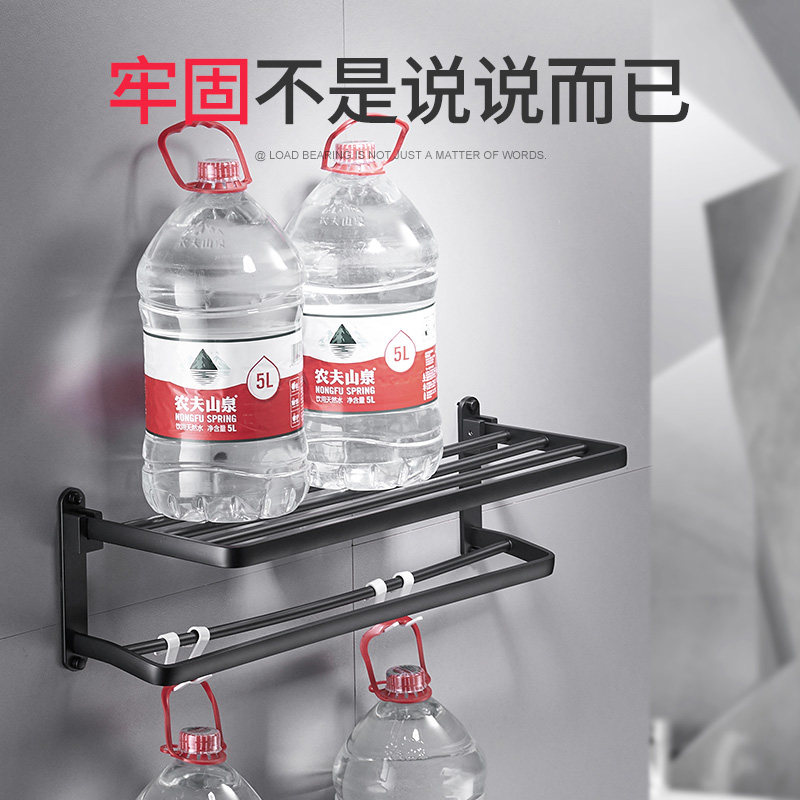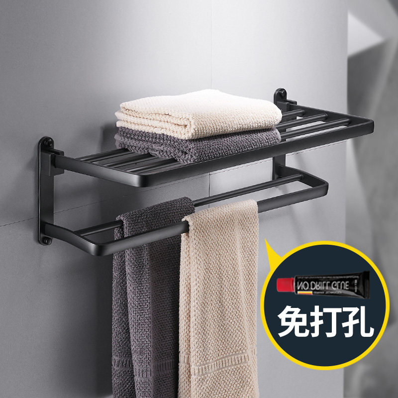 Black simple non-perforated bath towel rack Towel rack Powder room bathroom shelf Shower room wall-mounted bathroom pendant