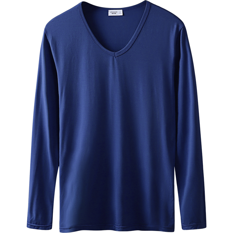 Autumn Winter Modale Male Long sleeves T-shirt V collar bottom shirt with autumn fit jacket pure white heat coat Long sleeves