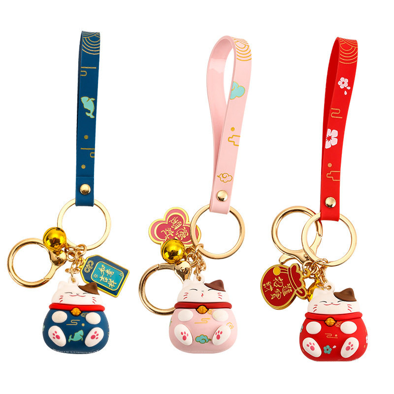 Lucky cat couple cartoon doll key chain pendant car key chain personality creative lucky key ring