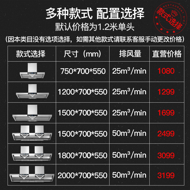 75CM single-head range hood 1 2 m single-head range hood 1 5 m single-head range hood 1 5 m Double head range hood 1 8 m Double head range hood 2 m Double head range hood