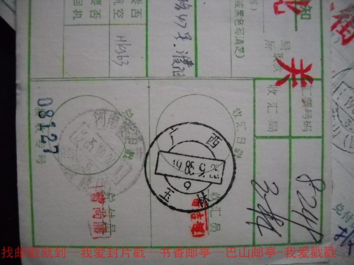 Remitted single cover waist frame date poke HK363 Guangxi-Yulin Lower crescent for 9-85 years
