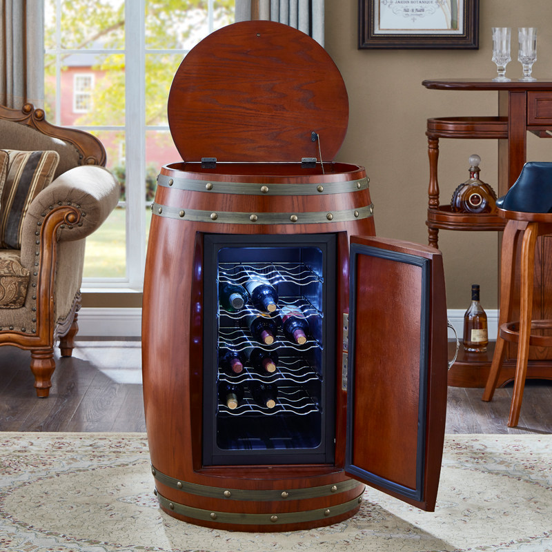 Solid wood wine barrel American wine cabinet Household constant temperature refrigerator Living room display wine cabinet Winery decorative barrel storage cabinet