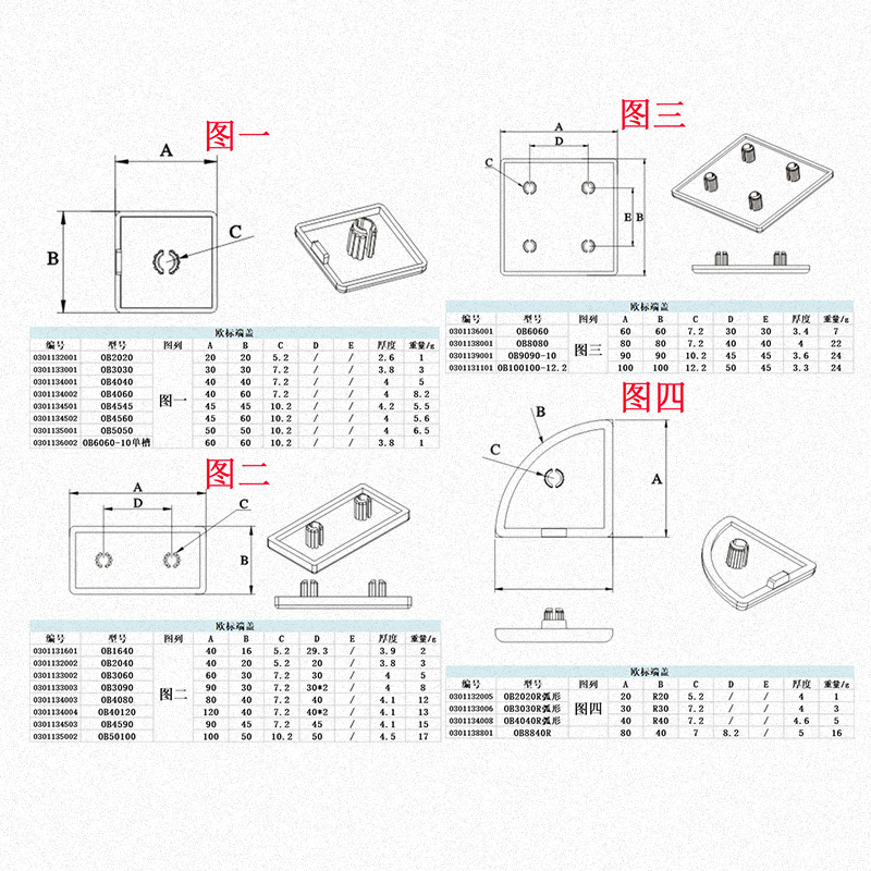European Standard 1640 End Cover European Standard 2020 End Cover European Standard 2020R Sector End Cover European Standard 2040 End Cover European Standard 2080 End Cover European Standard 3030 End Cover European Standard 3030R Sector