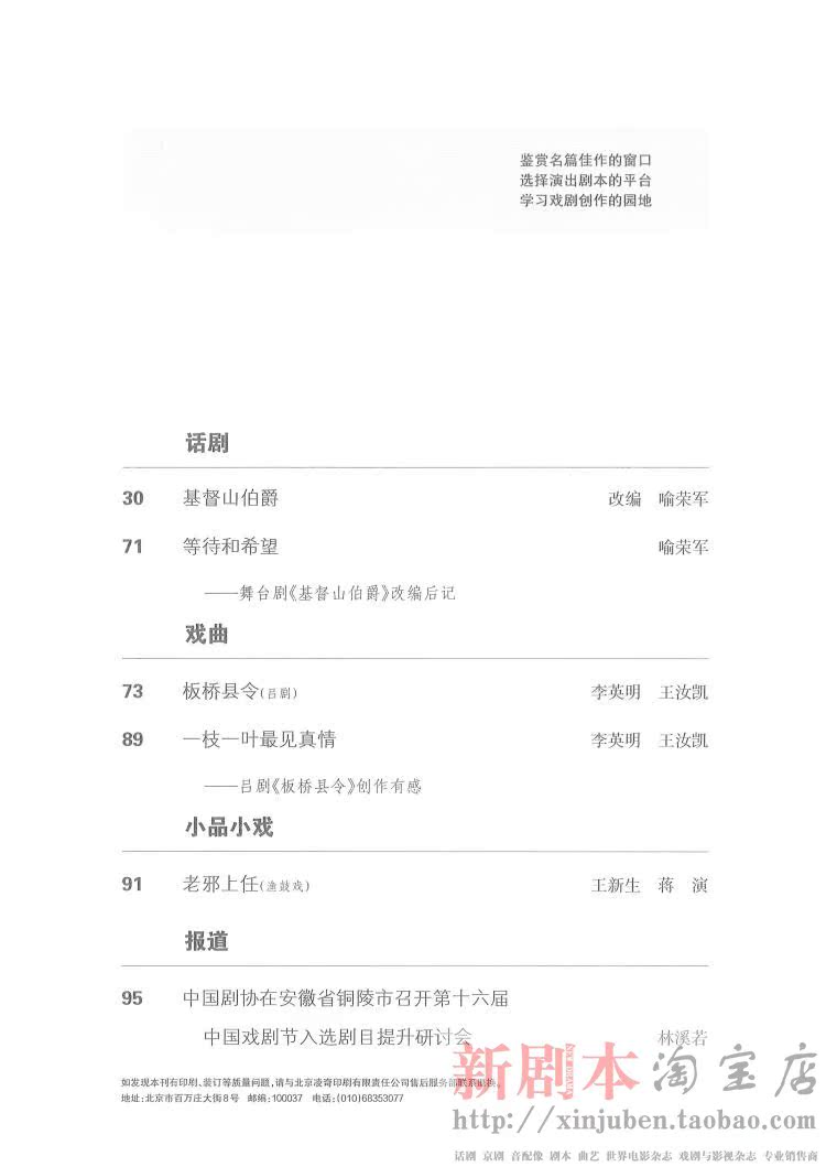 Script Magazine No 9, 2019 Yu Rongjun Drama The Count of Monte Cristo Lychee for Jiang Taobanqiao Magistrate
