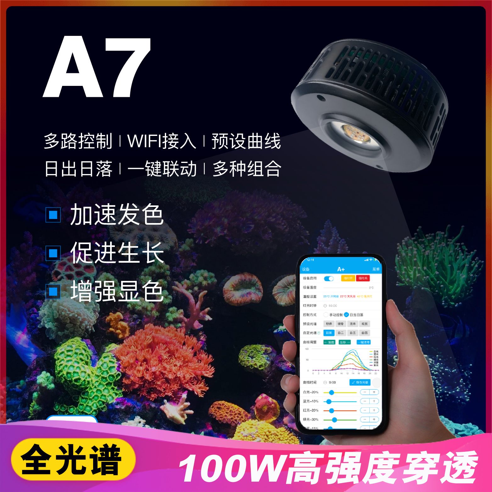 Sea tank small magic lamp Q2 (9W) 029 water knight the same model (30W) A052 sunrise sunset light (52W) A075 sunrise sunset light (75W) A7 generation (100W) + bracket Q2 + controller with sunrise sunset A7 second generation (100W) + bracket light M1 small magic lamp