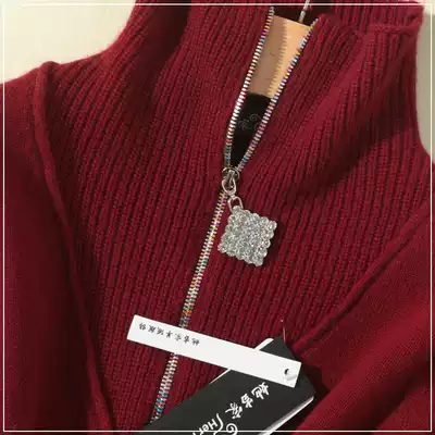 2021 autumn and winter New thick Street collar short color zipper cashmere sweater knitted cardigan women