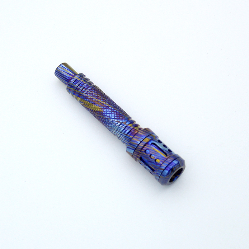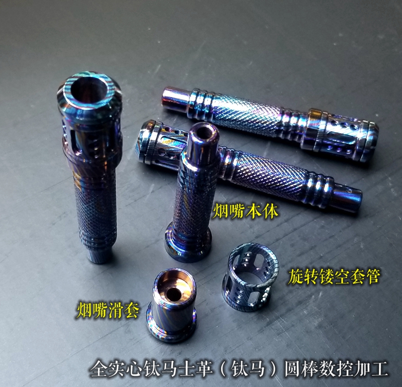 Round Point Hollowed-out Titanium Alloy Titanium Marxiang Tobacco Pipe Cigarette Holder Triple Filter Free of Flue Gas Nicotine
