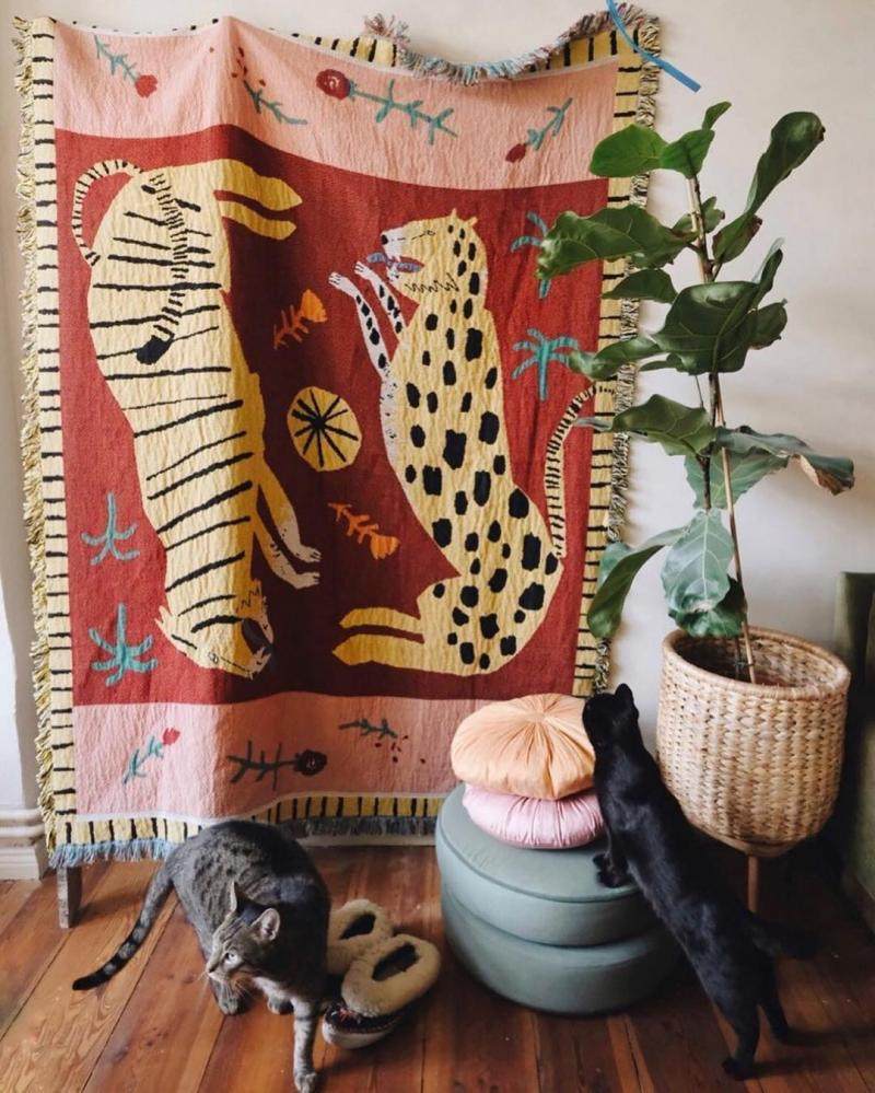 Dongbai Nordic ins Literary leisure blanket Animal tapestry Art blanket Abstract European and American creative blanket Personality decoration
