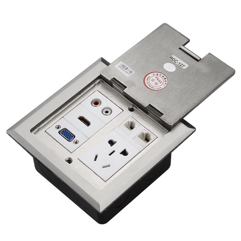 Multimedia ground socket stainless steel waterproof hidden household HDMI audio VGA ground socket floor socket