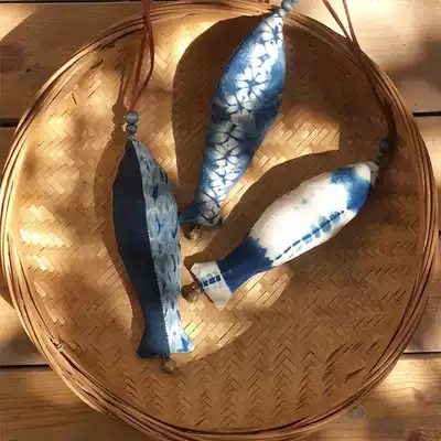 Blue continued Bai ancient method tie dyeing blue dye small fish pendant bag pendant key chain natural plant dyeing